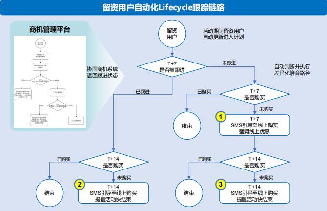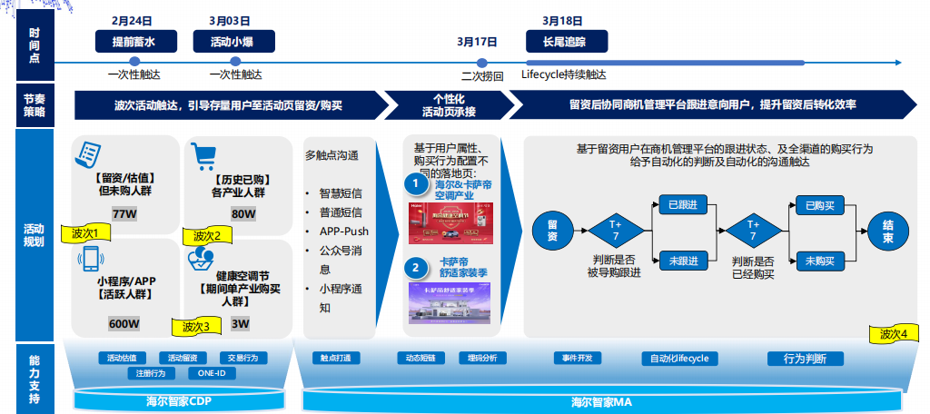 利用海尔智家MA和商机管理平台,实现自动化的生命周期管理和用户培育。