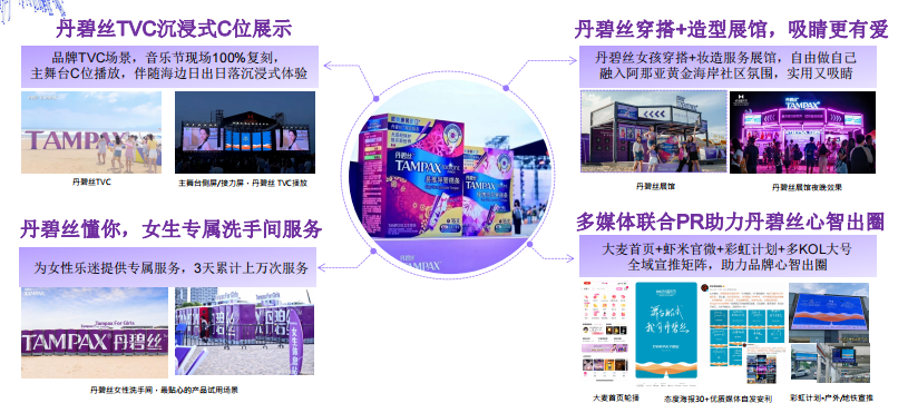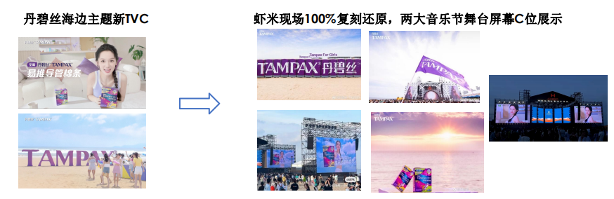 丹碧丝与阿那亚·虾米音乐节合作,通过音乐节平台展示品牌TVC,将品牌信息融入音乐节的氛围中。